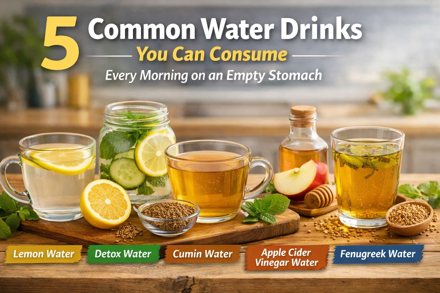 Drinking the right water-based beverages every morning on an empty stomach can be a simple yet effective wellness habit. Warm lemon water, detox water, cumin water, apple cider vinegar water, and fenugreek water each offer unique health benefits.