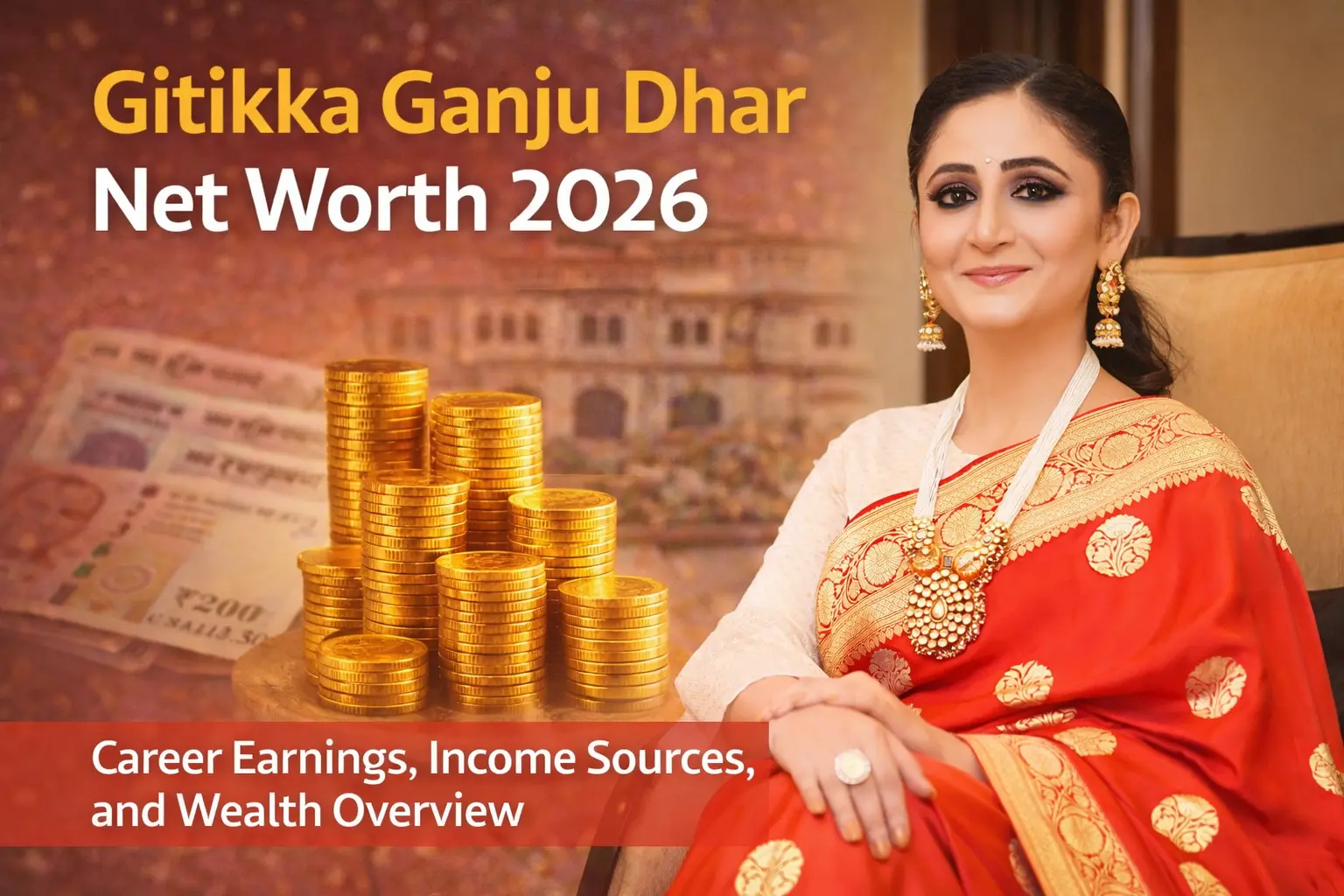 Gitikka Ganju Dhar’s net worth in 2026 is estimated between ₹8 and ₹17 crore. Her wealth is built on TV anchoring, acting, endorsements, and live events.